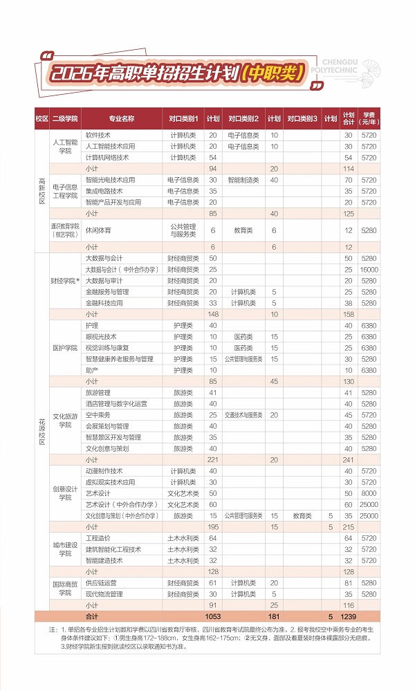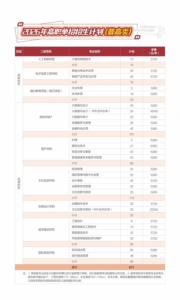 【双高院校】成都职业技术学院2026年高职单招招生专业计划(内附2025年分数线)-55体育